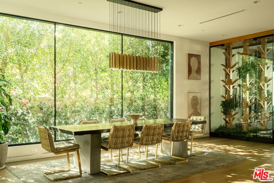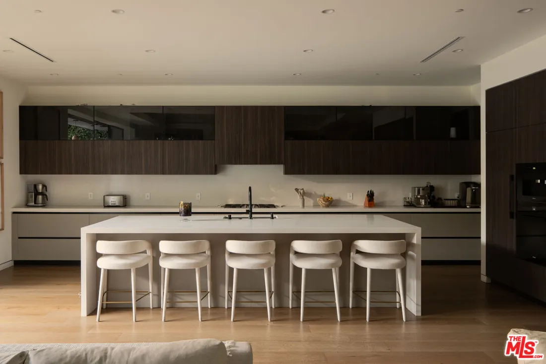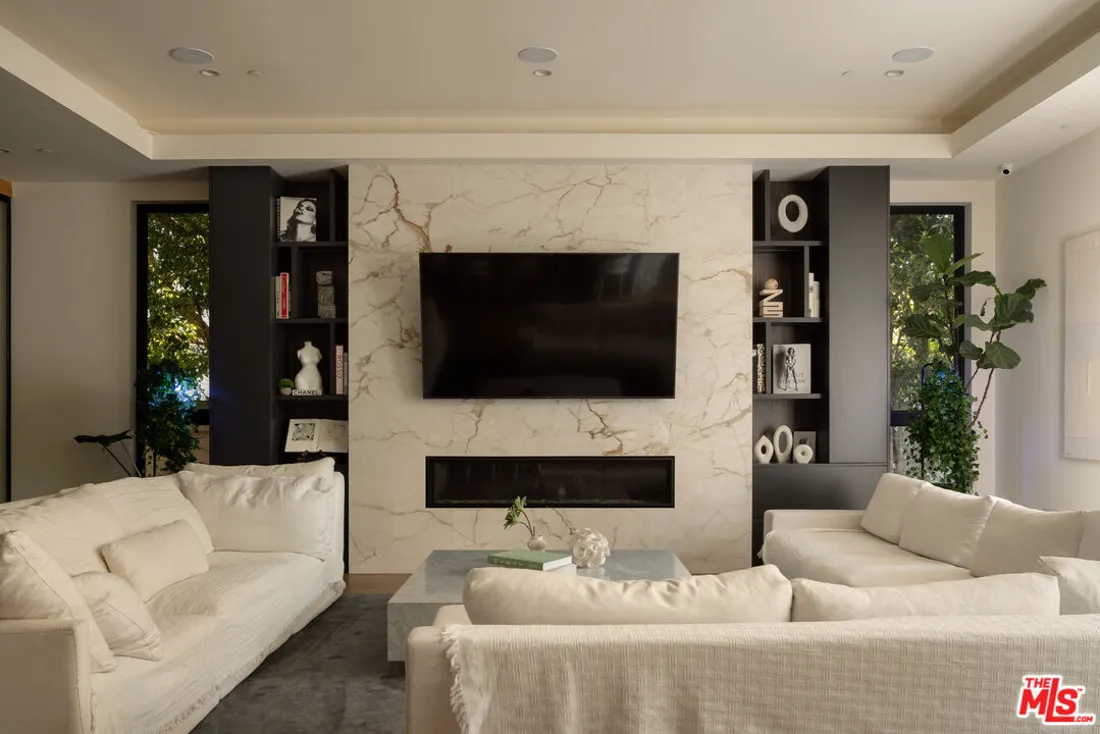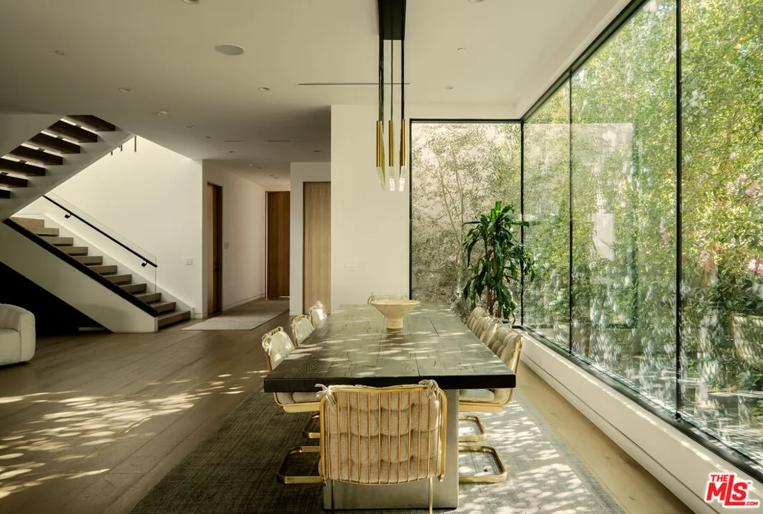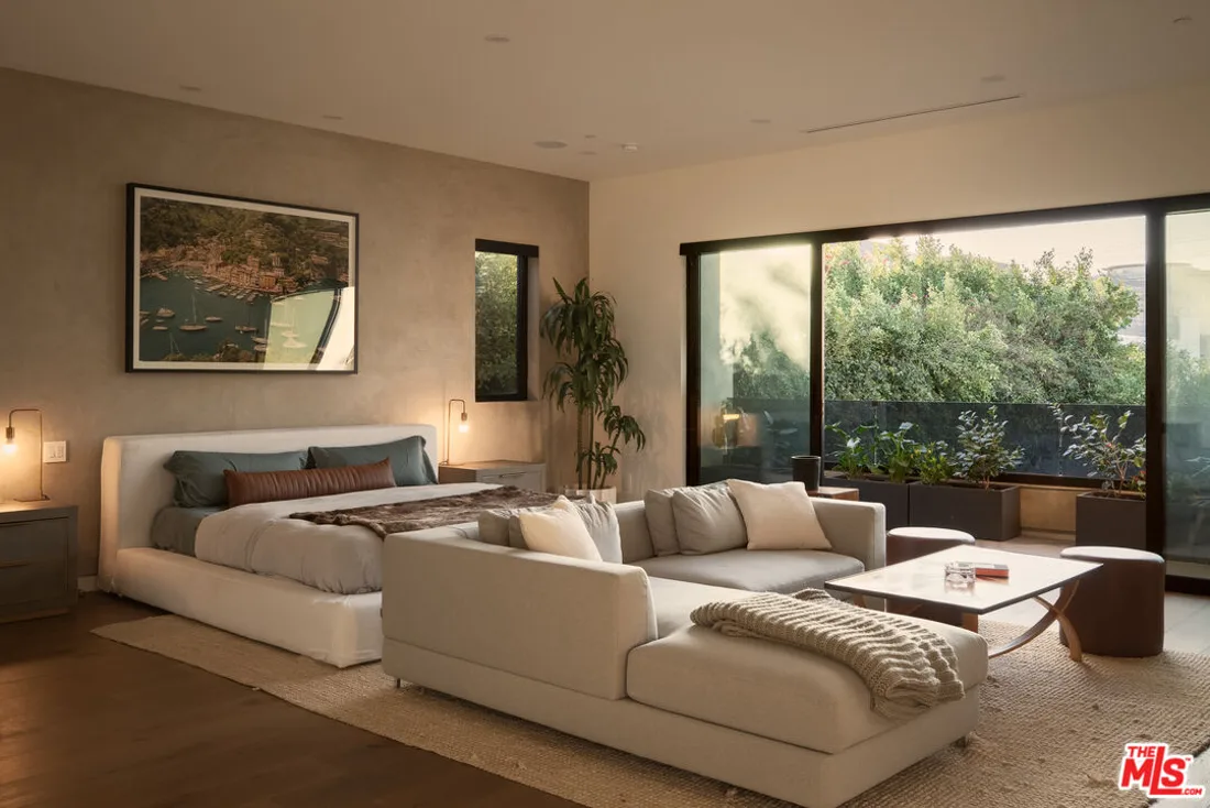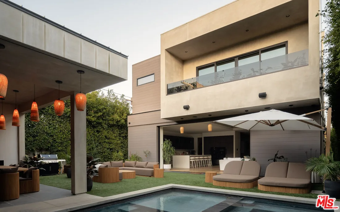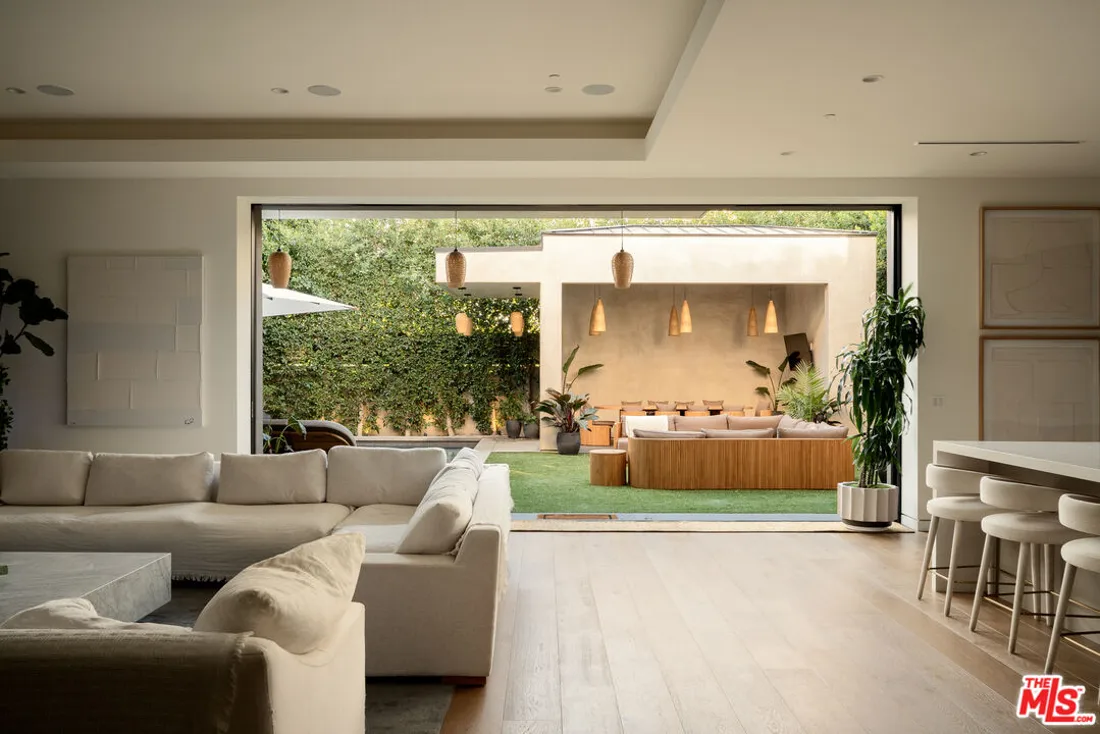 The Alfred Residence – A masterpiece of organic contemporary design built with grand scale, warmth and elegance throughout. Indulge in serene privacy, bespoke finishes, and incomparable design at 347 N Alfred Street. Located in the heart of Beverly Grove, this home spans over 6,110 square feet of meticulously crafted living space, offering 5 bedrooms and 6 bathrooms. With 12-foot ceilings and expansive windows, natural light pours into every room, creating a seamless connection between the indoors and outdoors. The gourmet kitchen is equipped with top-tier Miele appliances, including a built-in coffee machine, custom cabinetry, and a large waterfall-edge island. Ample storage, including a walk-in pantry, enhances functionality, while the adjacent dining and family areas offer versatile spaces for both casual living and entertaining; highlighted by a sleek linear fireplace framed in marble and a stately light fixture that doubles as a work of art. Upstairs, a quiet seating area offers a retreat for relaxation, and the secondary suite provides flexibility for an office, recording studio, or creative space. The primary suite features dual walk-in closets and a spa-inspired bathroom with oversized marble slabs, a freestanding soaking tub, a frameless glass shower, a sizeable walk-in closet, and auto-sensor lighting around custom vanities. A private balcony overlooks the backyard, where landscaping evokes the serenity of Tulum, with lush greenery and a custom water feature flowing into the pool and jacuzzi. The covered limewash lounge area includes an integrated sound system, designer pendant lighting, and a flat-screen TV, creating the ideal space for alfresco dining and entertainment. Smart home technology enhances convenience by effortlessly controlling lighting, climate, sound, and security. A dedicated home theater provides a premium cinematic experience, while the spacious garage and front entrance add practical luxury. Available for purchase with meticulously curated furnishings and bespoke decor, this home is a rare offering in Beverly Grove. Expertly designed to maximize space on its lot, it features a combination of high-end finishes and exceptional amenities not typically found in new builds in the area. Within close proximity to Melrose Avenue, The Grove, and premier dining and shopping destinations.
