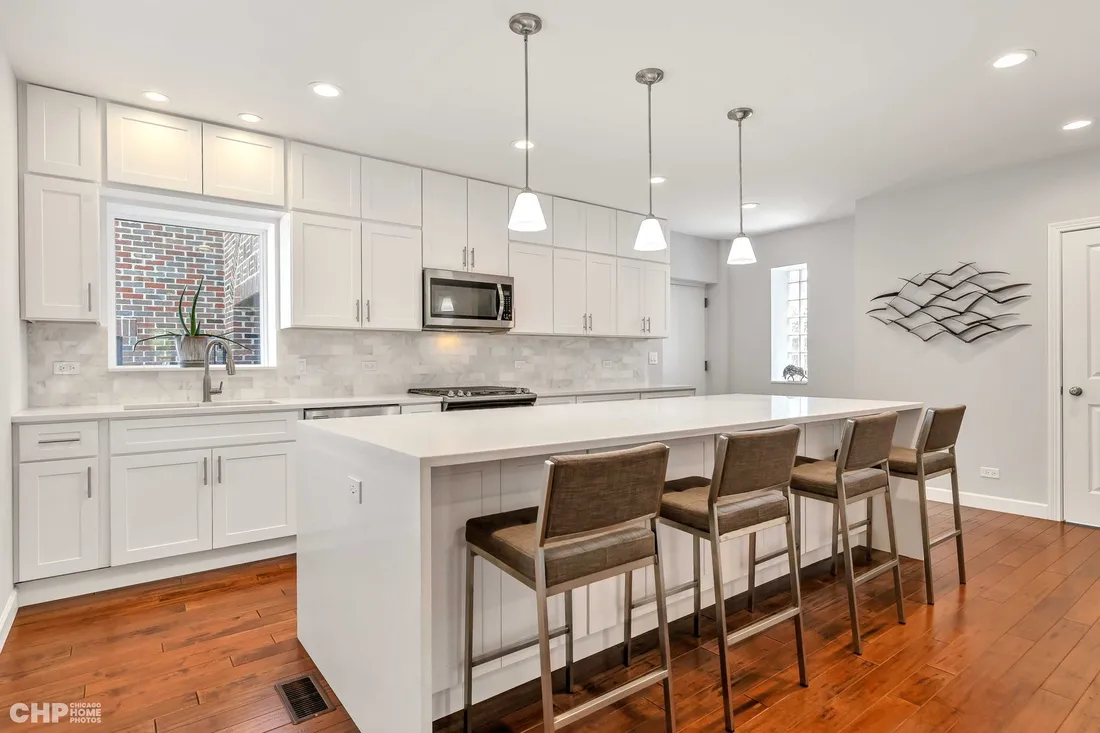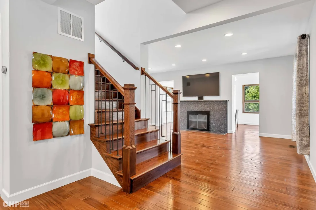 This beautifully designed fully remodeled custom-built home is situated on an expansive lot on highly desirable corner of Lunt and Olcott. In addition to its impressive curb appeal, this fine home offers a comfortable and spacious layout across 4 levels with modern finishes and decor and incredible livability with many flex rooms/spaces to accommodate several uses including offices, gym, rec room, studio, in-law/nanny suite etc. Newly designed kitchen includes new cabinetry, Quartz countertops and an oversize 10ft island with waterfall counters for maximum entertainment options. 4 good size bedrooms on 2nd floor including expansive Primary Suite. 3rd Floor offers additional dramatic space that can be used as additional Primary Suite, Home Theater, Studio, Corporate HQ etc. Finished Basement with additional Rec room and Home Gym. 5 Full Baths in this home. 2nd Floor and Basement Laundry. Extra Large 3 Car Heated Attached Garage. Driveway to accommodate 3-4+ cars. Upgraded Mechanicals include 2-Zone HVAC system, 3 EV charging Plugs for Electric Vehicles, Spray Insulation, Underground Electric, Hot Water Circulation, Outdoor Camera System, Custom Lighting package. Great Outdoor space on 50×147 corner lot with fenced yard and mature landscaping. Premier Location in the Neighborhood – close to all the amenities and conveniences of Edison Park and Park Ridge.